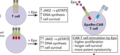 Using a novel approach, Vinanica and colleagues revealed that the persistence and efficacy of CAR T-cells in preclinical studies can be enhanced by ectopic expression of a highly active mutant form of the erythropoietin receptor.